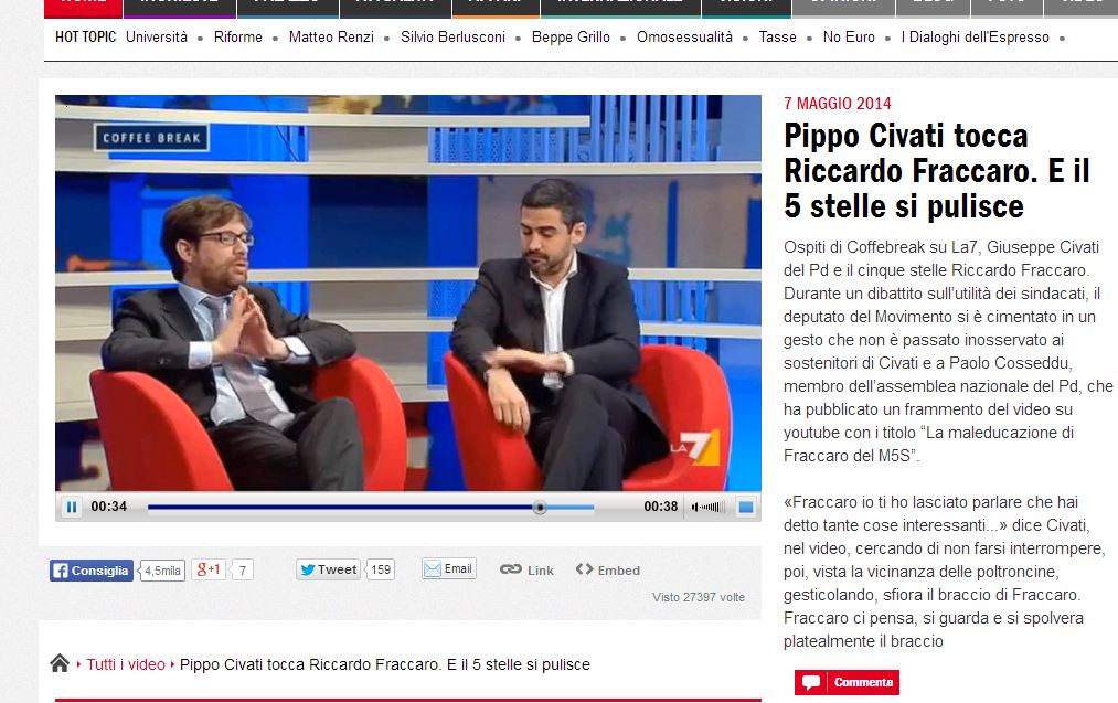 (VIDEO: Civati lo tocca, Fraccaro si pulisce la giacca, da L’Espresso)